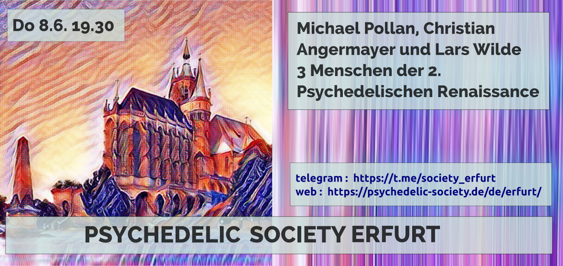 Die psychedelische Renaissance läuft auf Hochtouren und ist so sehr anders als die erste Welle in den 60er Jahren. Menschen, die die kommenden Jahre als ” das goldene Zeitalter der Biotechnologie ” bezeichnen, sammeln hunderte Millionen Dollar an der Börse für Psychdelische Therapie ein. Die psychedelische Renaissance ist zweifellos Geld- und Konzern getrieben und hat eine nähe zum Transhumanismus. Der Vortrag wird einen Überblick über aktuelle Entwicklungen im Bereich der Legalisierung von Psychedelika geben und diese kritisch betrachten. Dieser Abend gibt dir die Möglichkeit die Psychedelic Society Germany und die Psychedelic Society Erfurt kennenzulernen und dich mit begeisterten Psychonautinnen vor Ort zu vernetzten.
